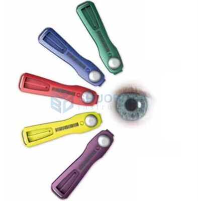 A thermoluminescent detector is used in each lens dosimeter; blue or red are available.